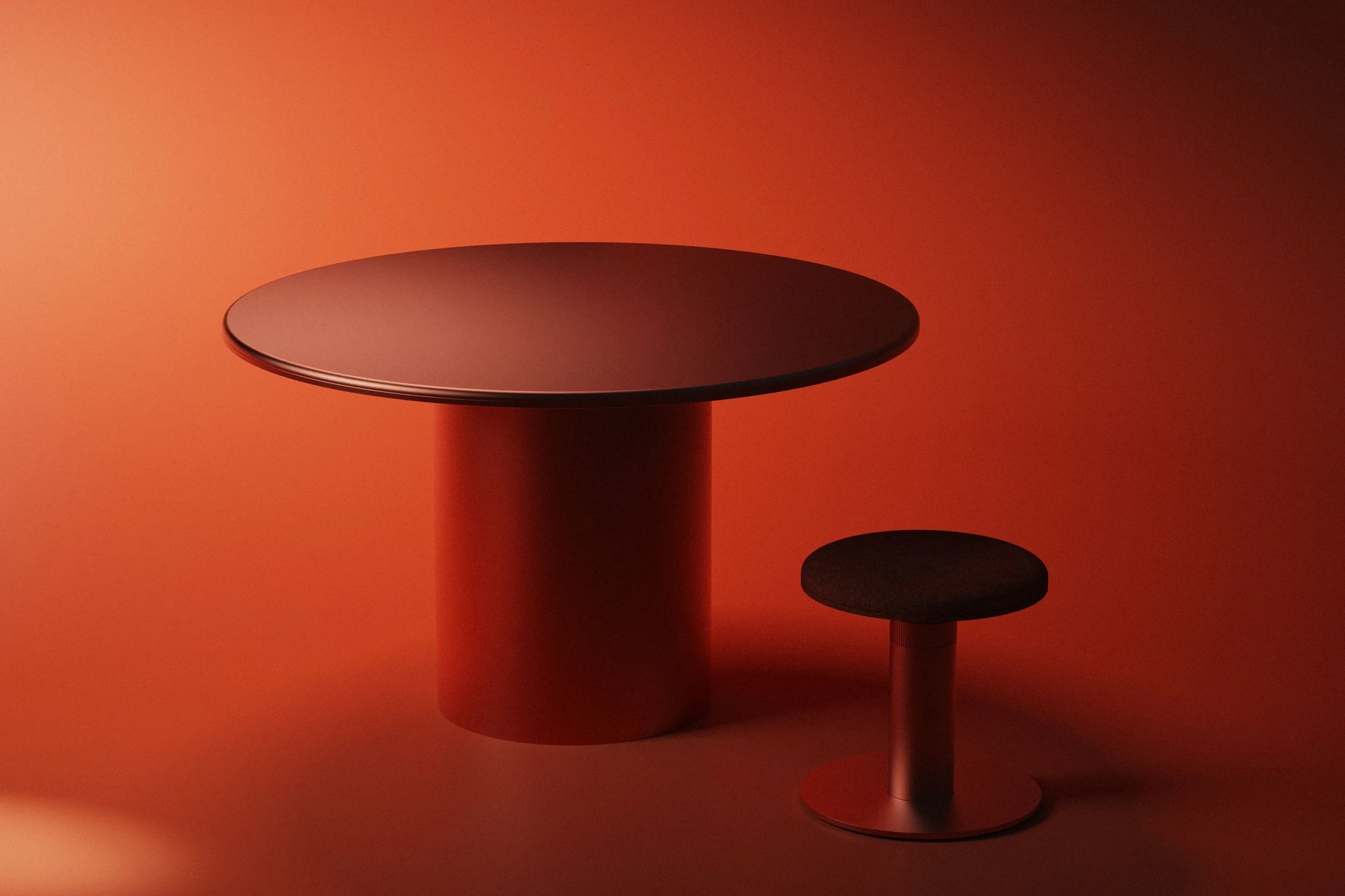 Each piece is constructed primarily from aluminium. Waterjet-cut sheet forms the seat, back, and base of the chair, with bends introduced post-cutting to achieve the final structure. A large-diameter extruded aluminium tube forms the central spine, split into three parts. Threaded sections allow the user to adjust seat height, secured in place by a tactile locking nut to prevent movement during use. Selective CNC machining ensures accurate part fitment and clearly defined connection points, particularly where the seat and base join the central tube.